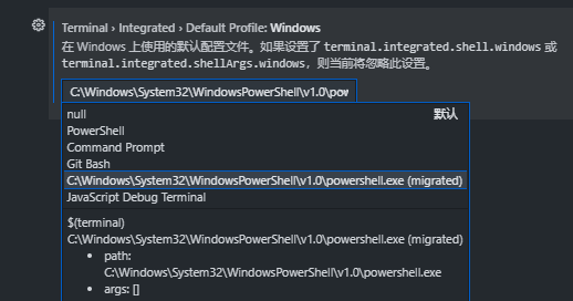 - 将其配置文件名称设置为 Terminal › Integrated › Default Profile: Windows 中的默认值。