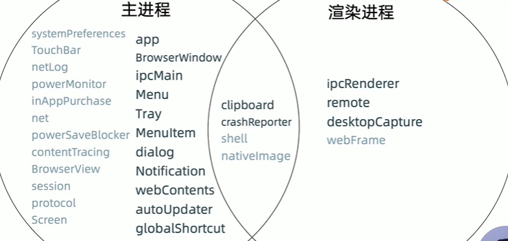 | ipcMain(跟ipcRenderer进行IPC通信) | desktopCapture系统截图/视频流 | |